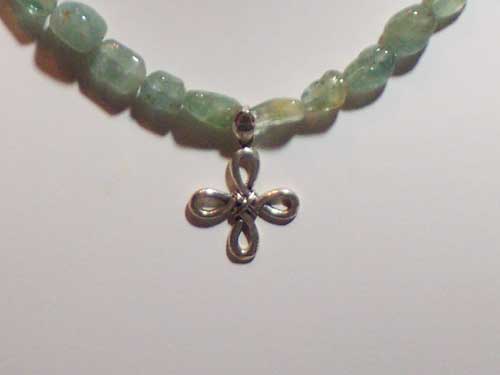Aquamarine Smooth-polished Nugget Gemstone Beaded Necklace with Sterling Silver Celtic Knot Pendant. A sterling silver toggle completes the piece. Length: 17" Price: Sold